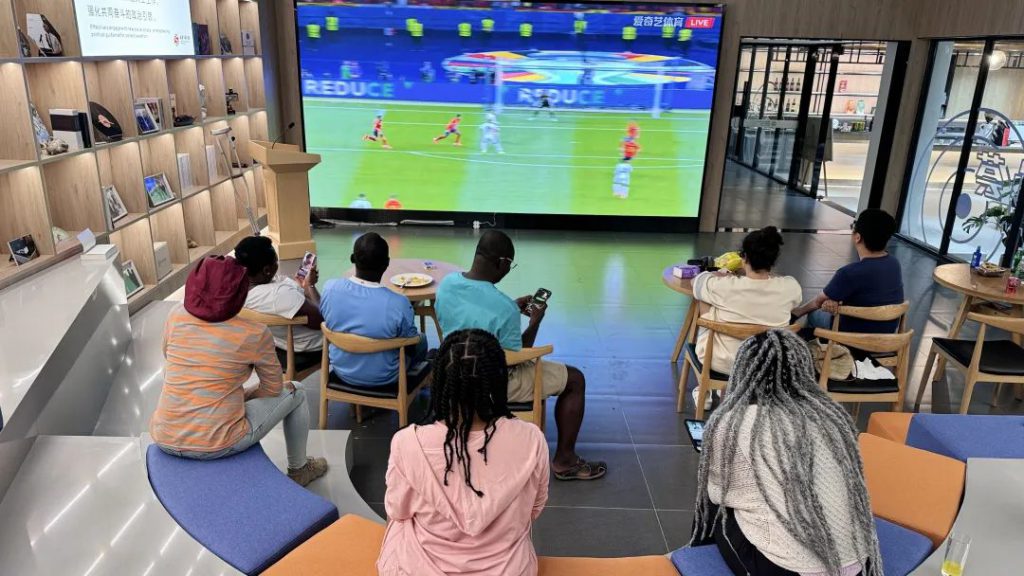 At 3:00 AM on July 15th, the Zhejiang (Shaoxing) High-Level Foreign Experts Innovation Center organized a viewing event for the final match of the “2024 Euro Cup.” The event invited over 20 foreign friends from various countries within the park, including Italy, France,Nigeria, Algeria, Iran, Cameroon, and Syria, to watch the final Spain vs. England.