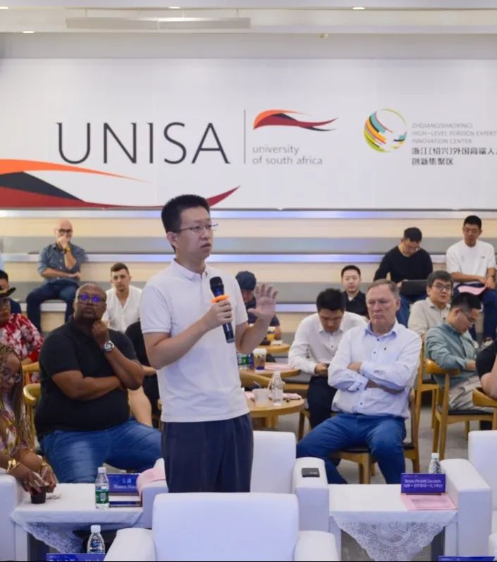In order to jointly build the China-Africa Digital Technology Cooperation Center and construct digital demonstration projects, UNISA-JAR Partner Joint Artificial Intelligence Enabled Economy Symposium was held in the Zhejiang (Shaoxing) High-Level Foreign Experts Innovation Center on October 18.