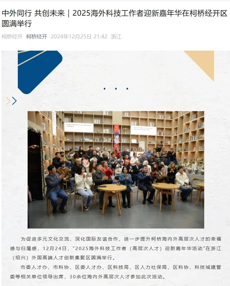 Development Zone | The 2025 New Year Carnival for Overseas Professionals was held successfully in Keqiao Economic Development Zone.