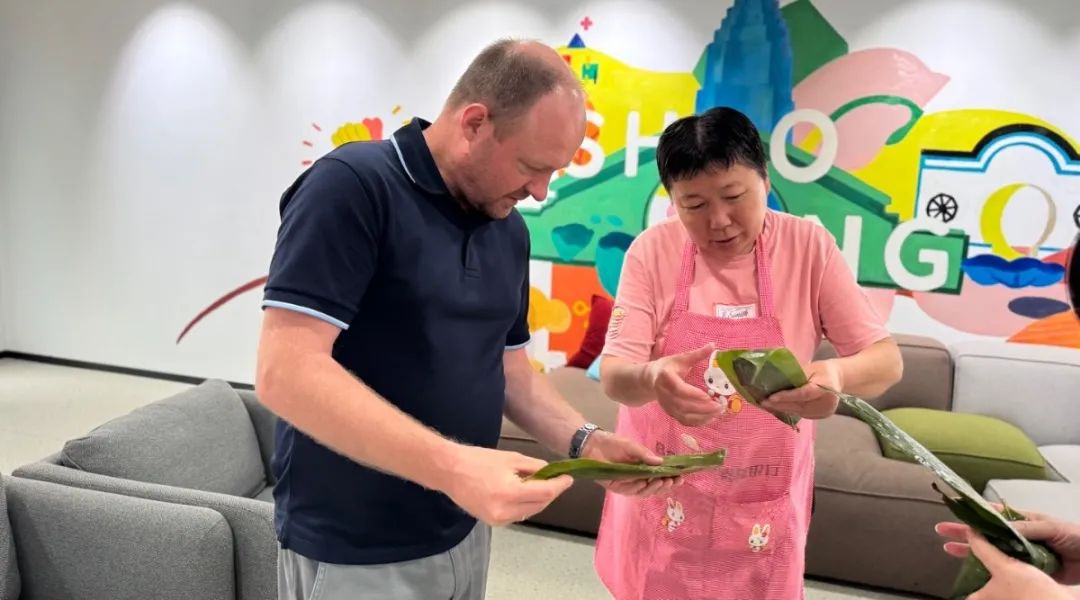At the event, participants explored Chinese calligraphy and learned how to make zongzi—glutinous rice dumplings wrapped in bamboo leaves. Through these interactive activities, they gained a deeper understanding of the Dragon Boat Festival’s history and customs, in a setting filled with festive cheer and enthusiasm for cross-cultural exchange.