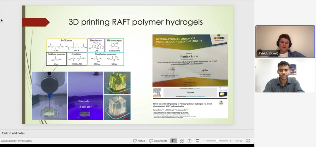 On July 17, Postdoc Recruitment Interview with Dr. Patrick Imrie from University of Auckland working 3D-printing materials.