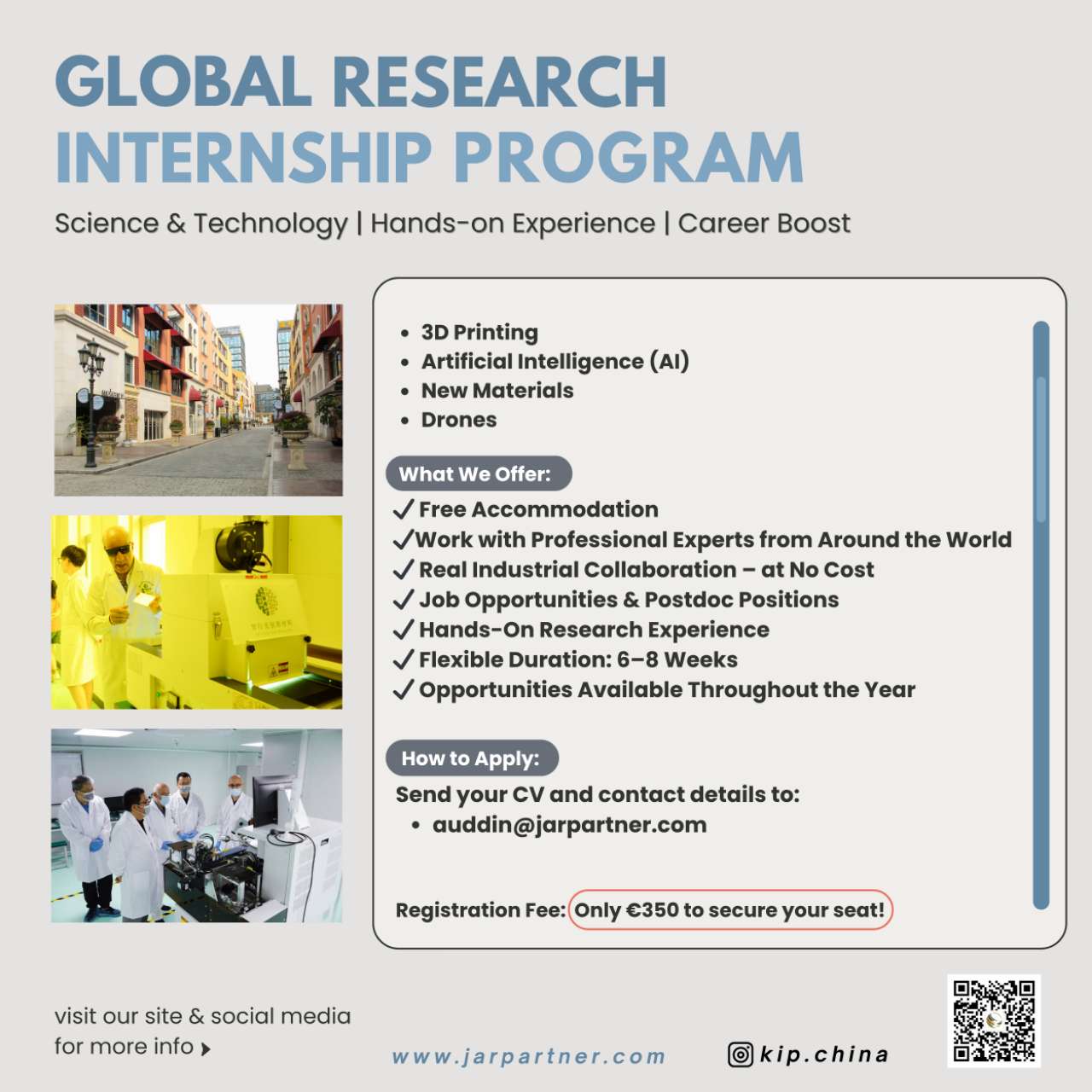 Global Research Internship Program is designed for motivated students, graduates, and early-career professionals who want to gain hands-on experience in cutting-edge fields while working under the mentorship of leading experts from around the world.