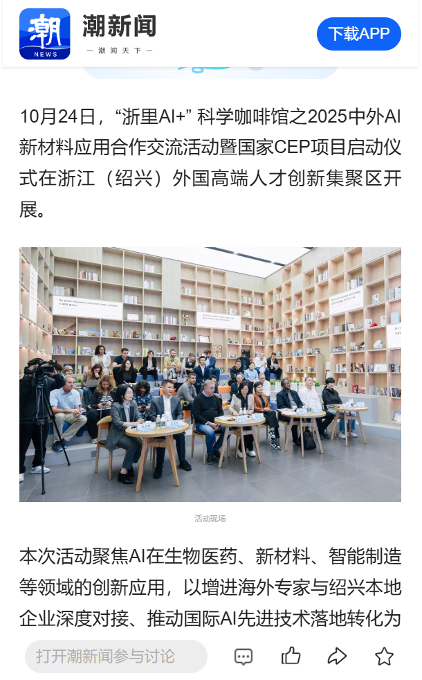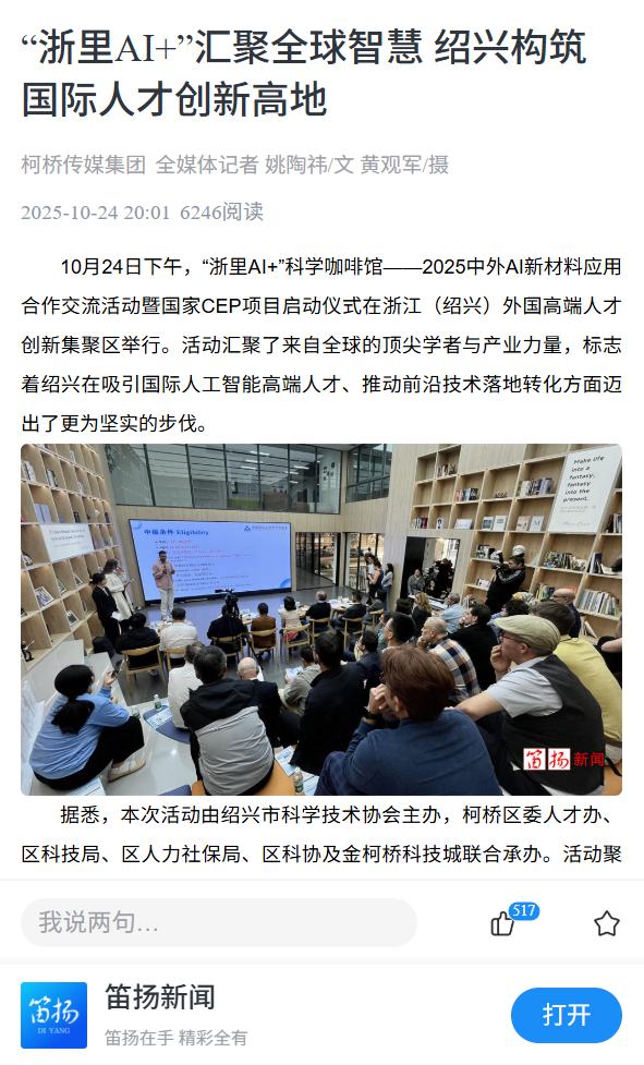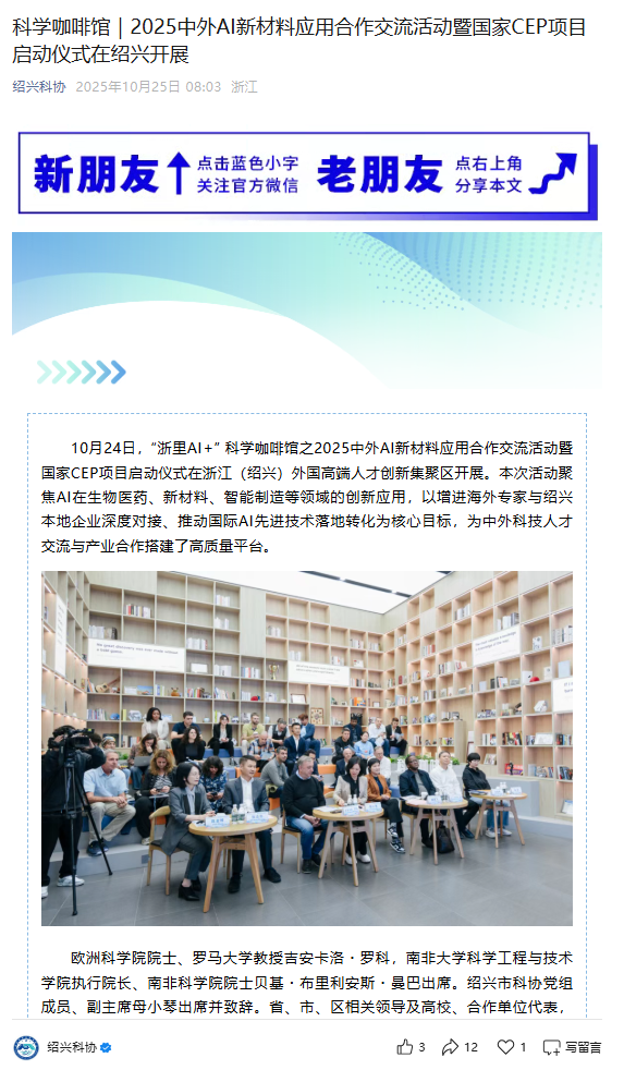 Shaoxing Association for Science and Technology | The 2025 China–Foreign AI New Materials Cooperation Exchange and National CEP Project Launch Ceremony was held in Shaoxing