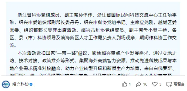 Shaoxing Association for Science and Technology | Intelligent Manufacturing Drives the Future, Connecting Shaoxing — The “Belt and Road” Overseas Experts Visit to Shaoxing Was Held